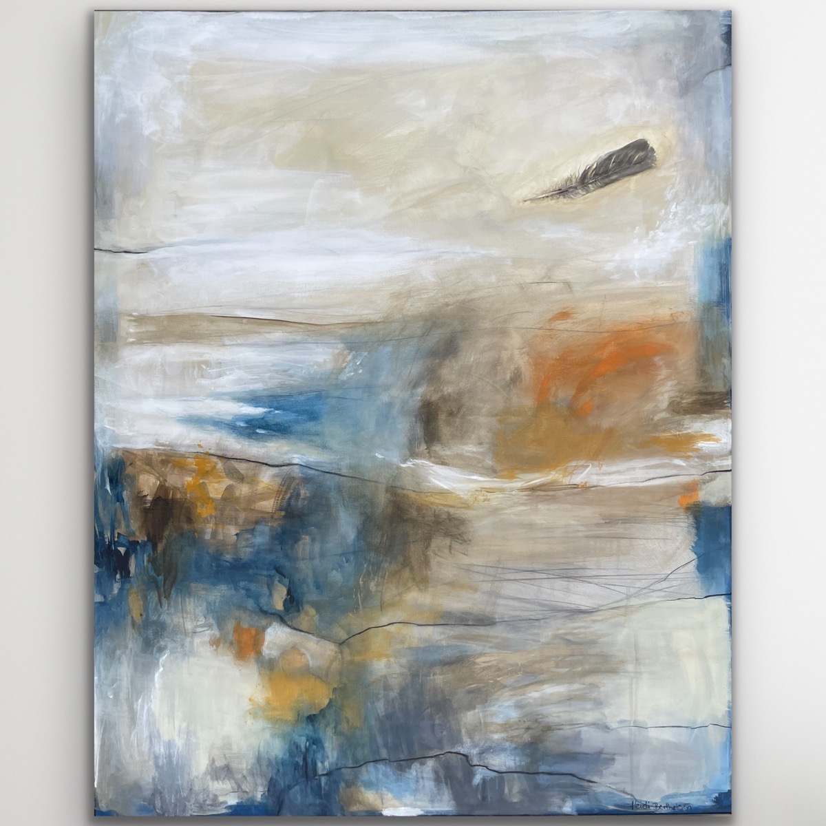 I dette maleri har jeg gemt/malet en rigtig fjer med ind i maleriet. Dette er min måde og sende et budskab ud i verden på, samt at give mine malerier et kendetegn fra mig. Budskabet i fjeren er at minde dig om at du er elsket af din skytsengel, og huske på at sprede god og kærlig energi på din vej.