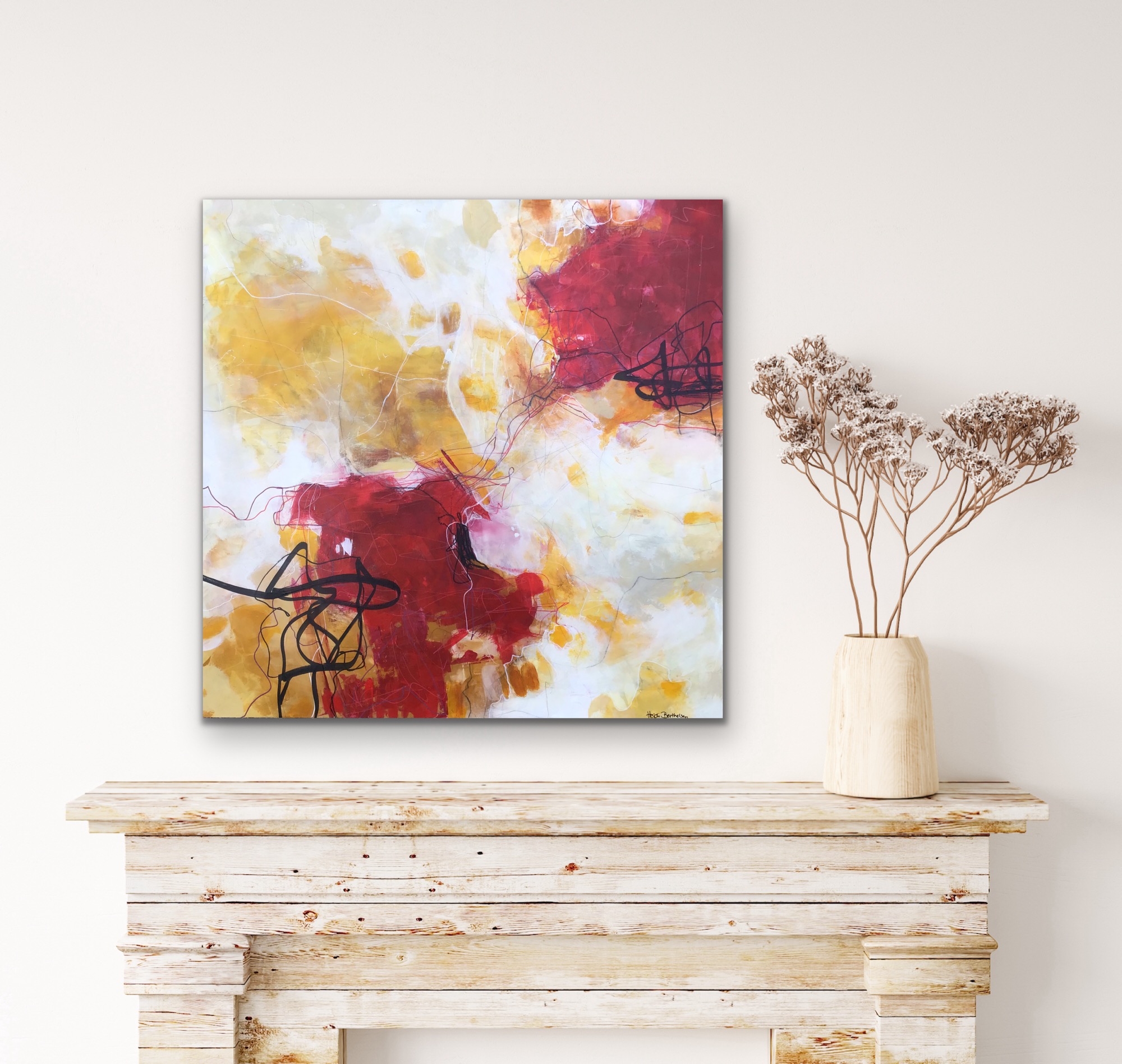 “Heartbeat” er malet på en træplade i str.55×55.