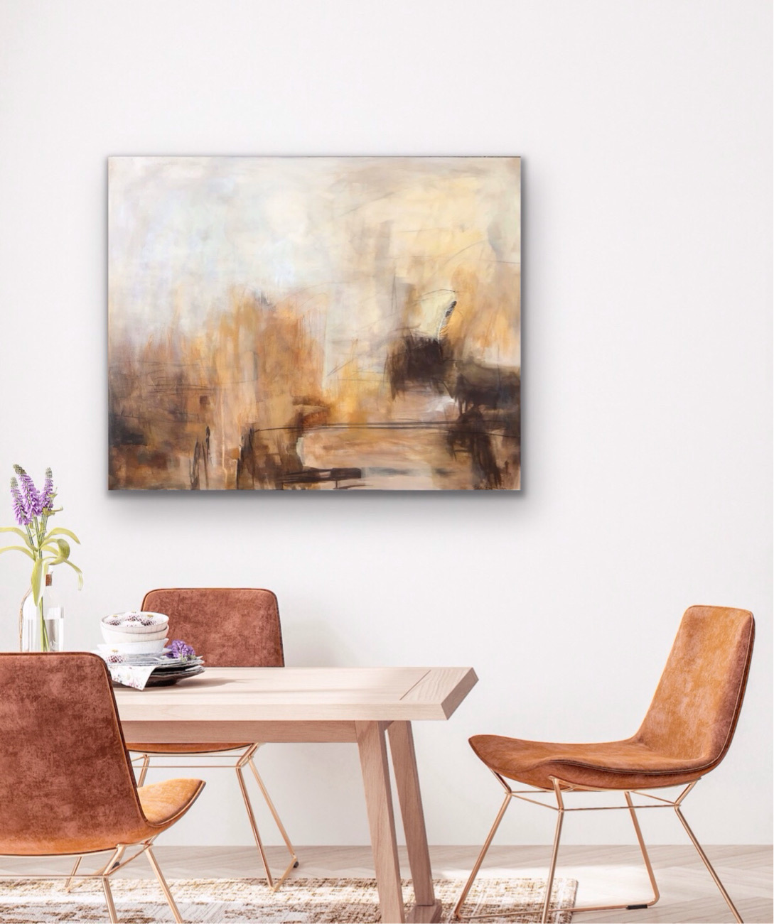 “Igennem tid og sted” er malet på kvalitets lærred i str. 80×100 med en dybde på 4cm.