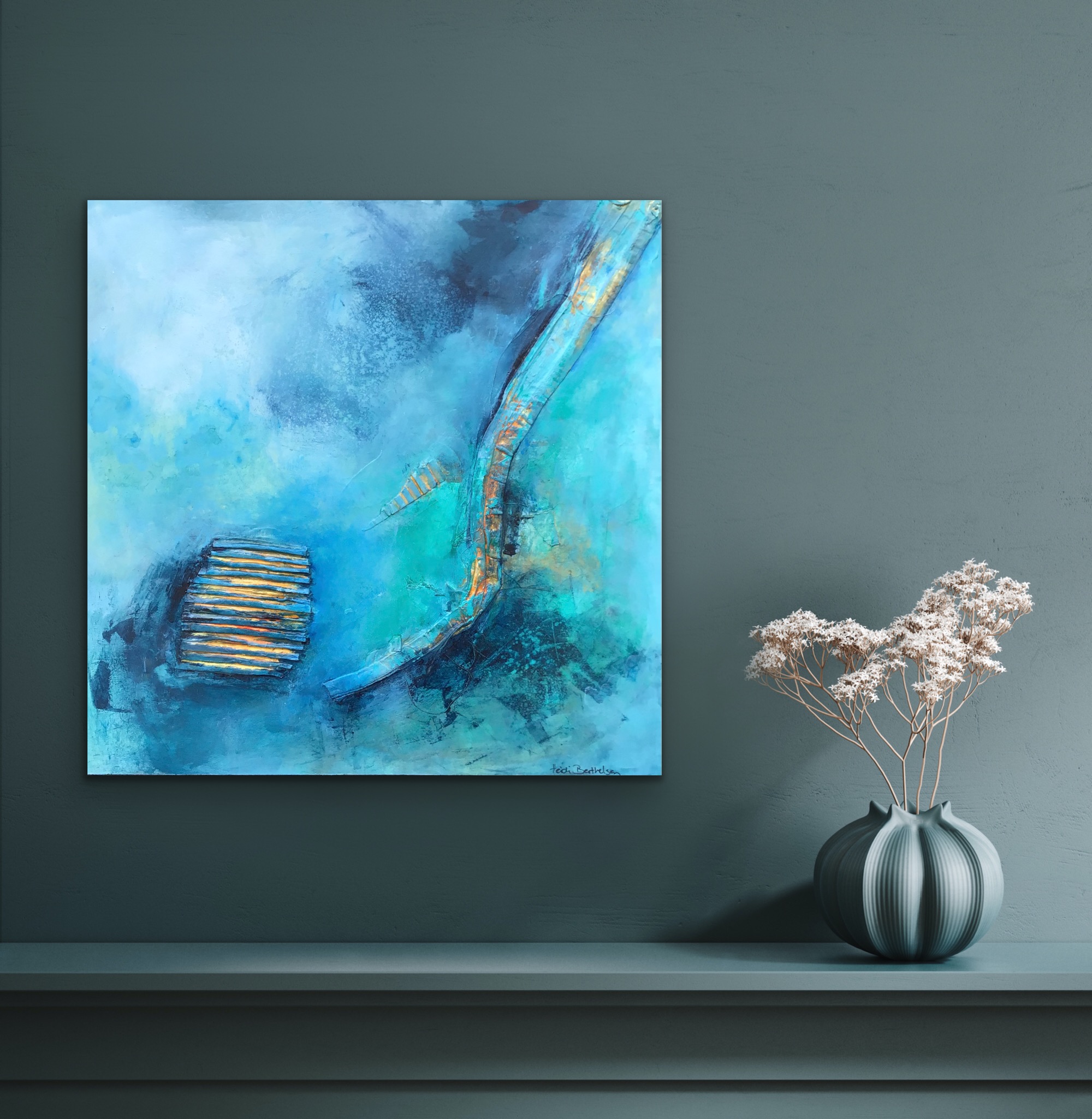 Et smukt maleri med mange smukke unikke detaljer for øjet og betragte. Ekstra struktur er lagt i maleriet, som giver en ekstra dimission og dybde.