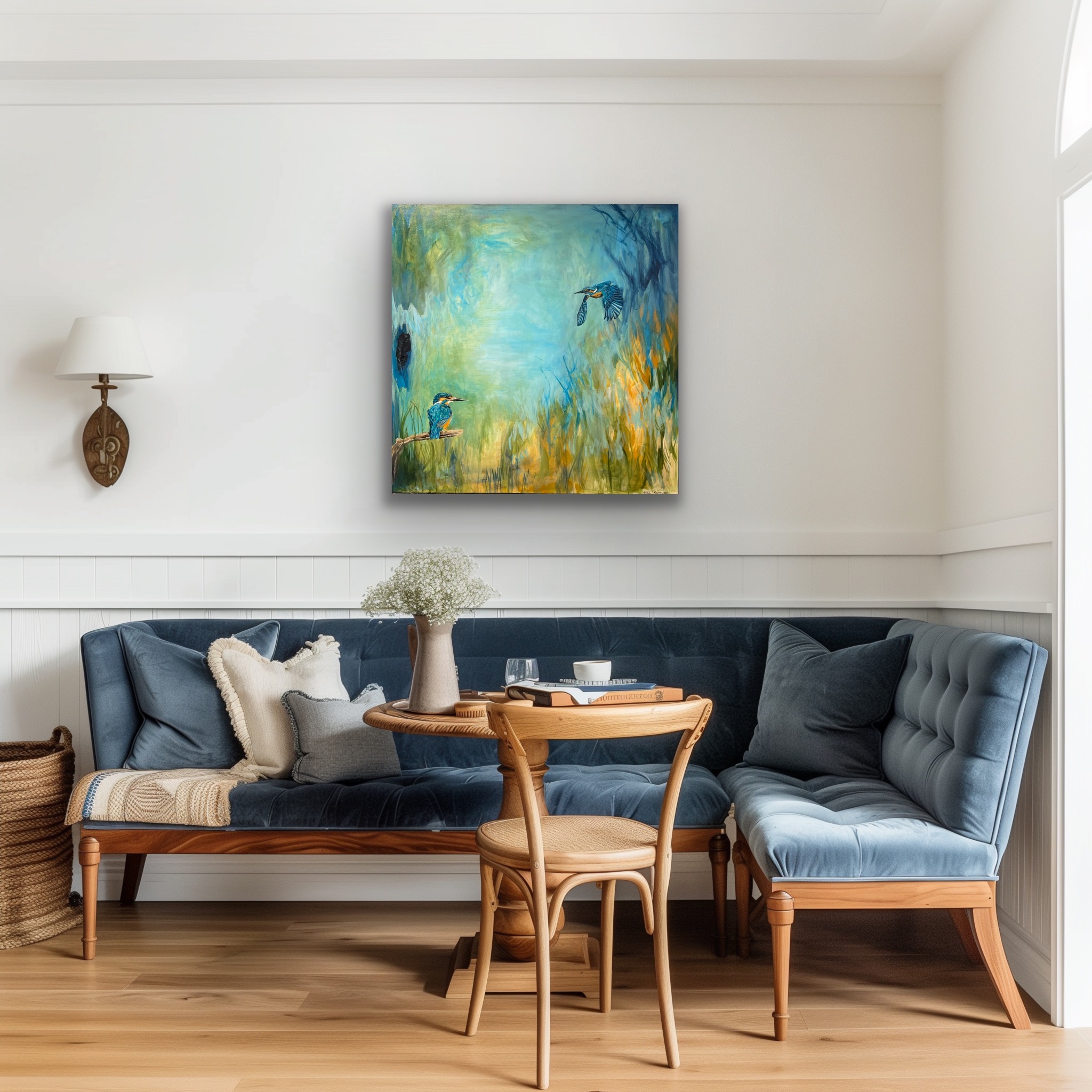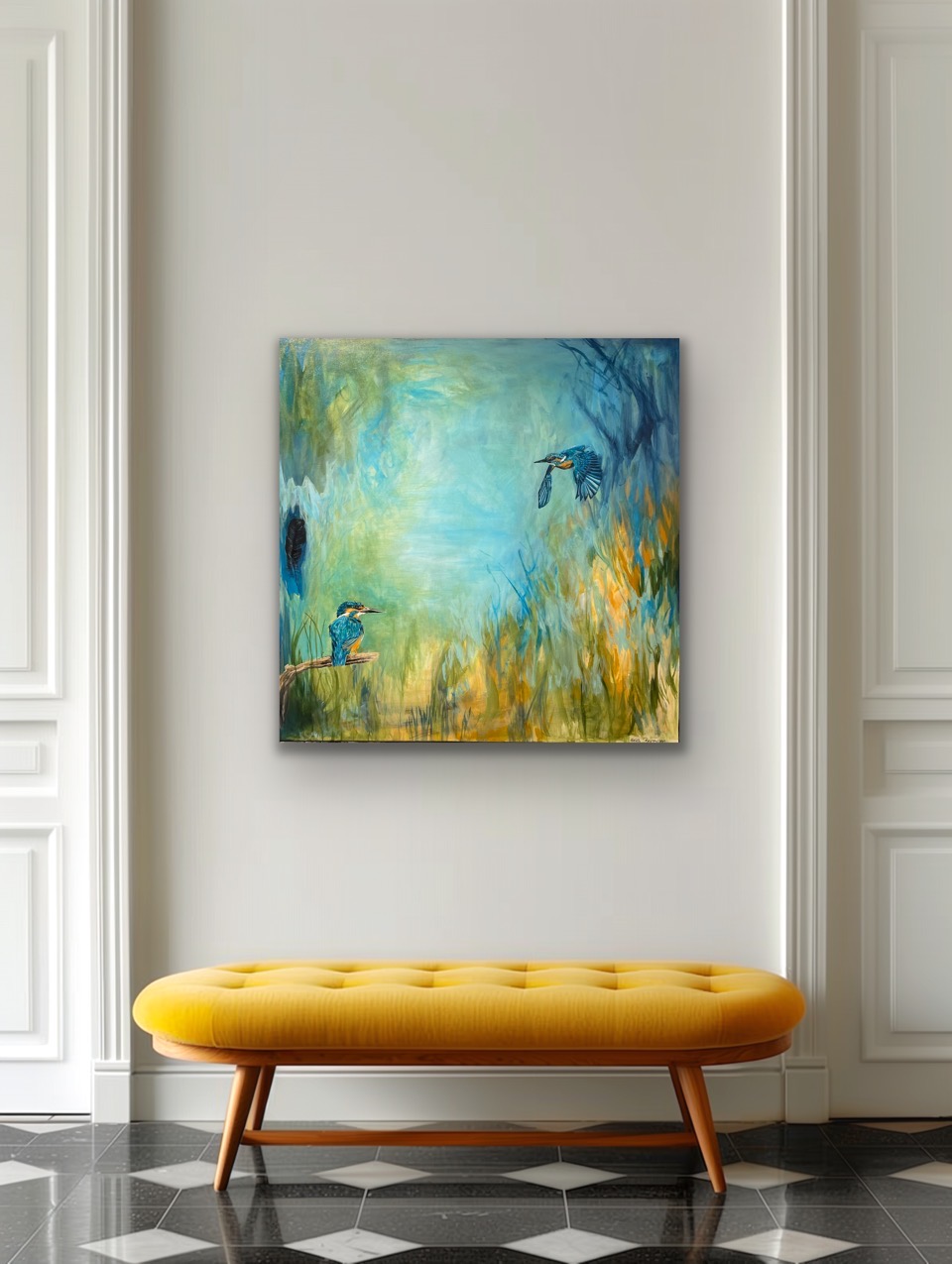 “Isfugle” er malet på kvalitets lærred i str. 80×80 med en dybde på 4 cm.