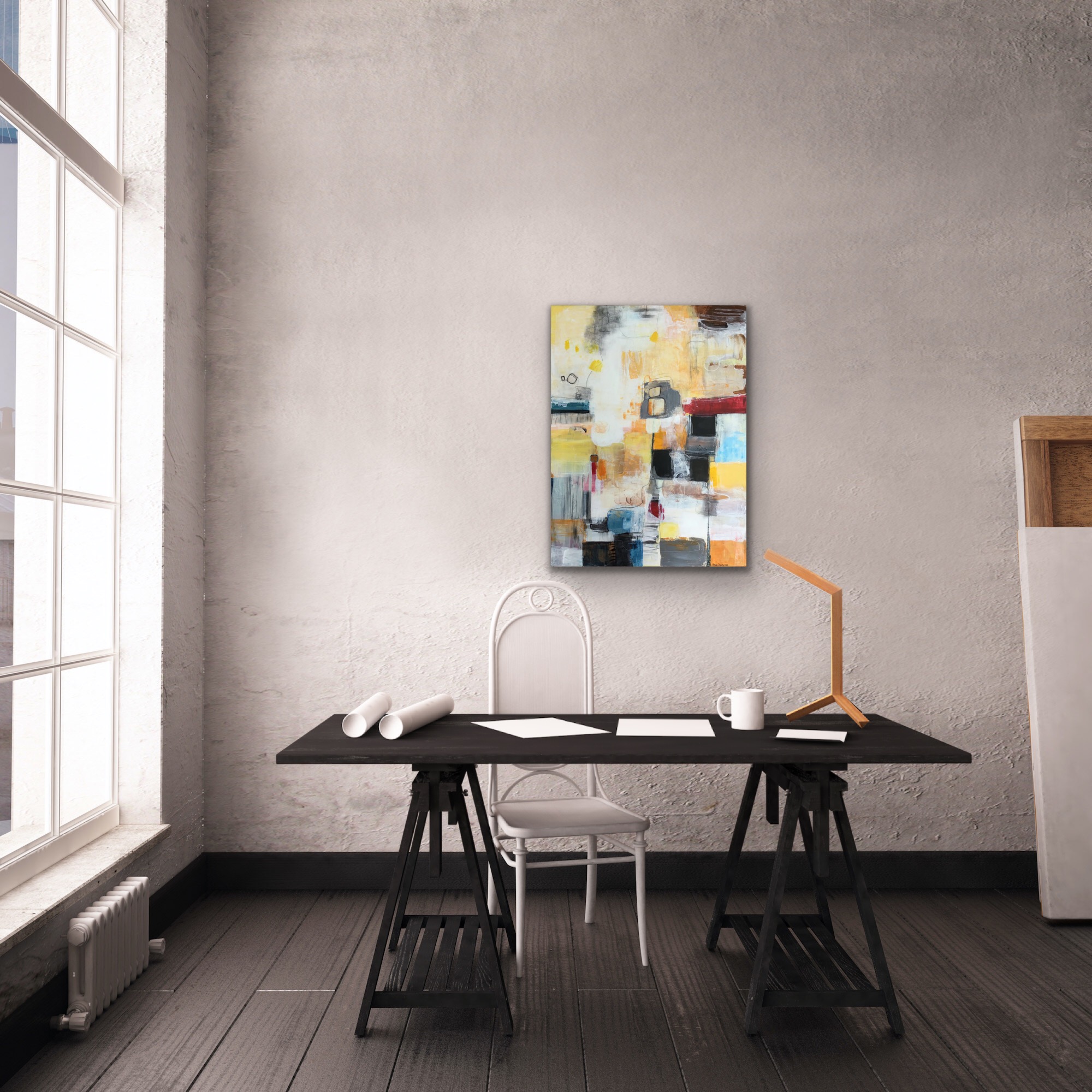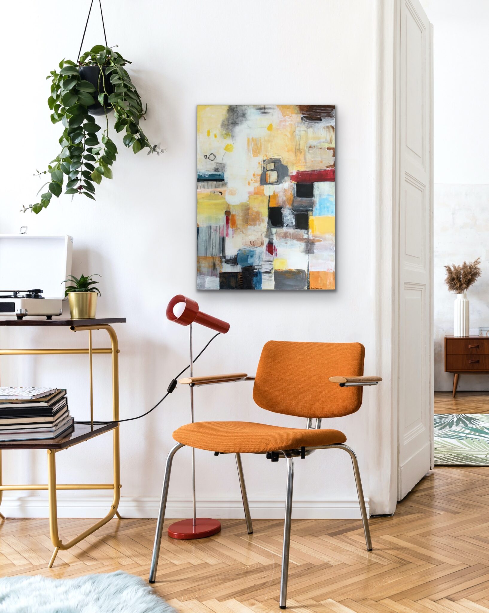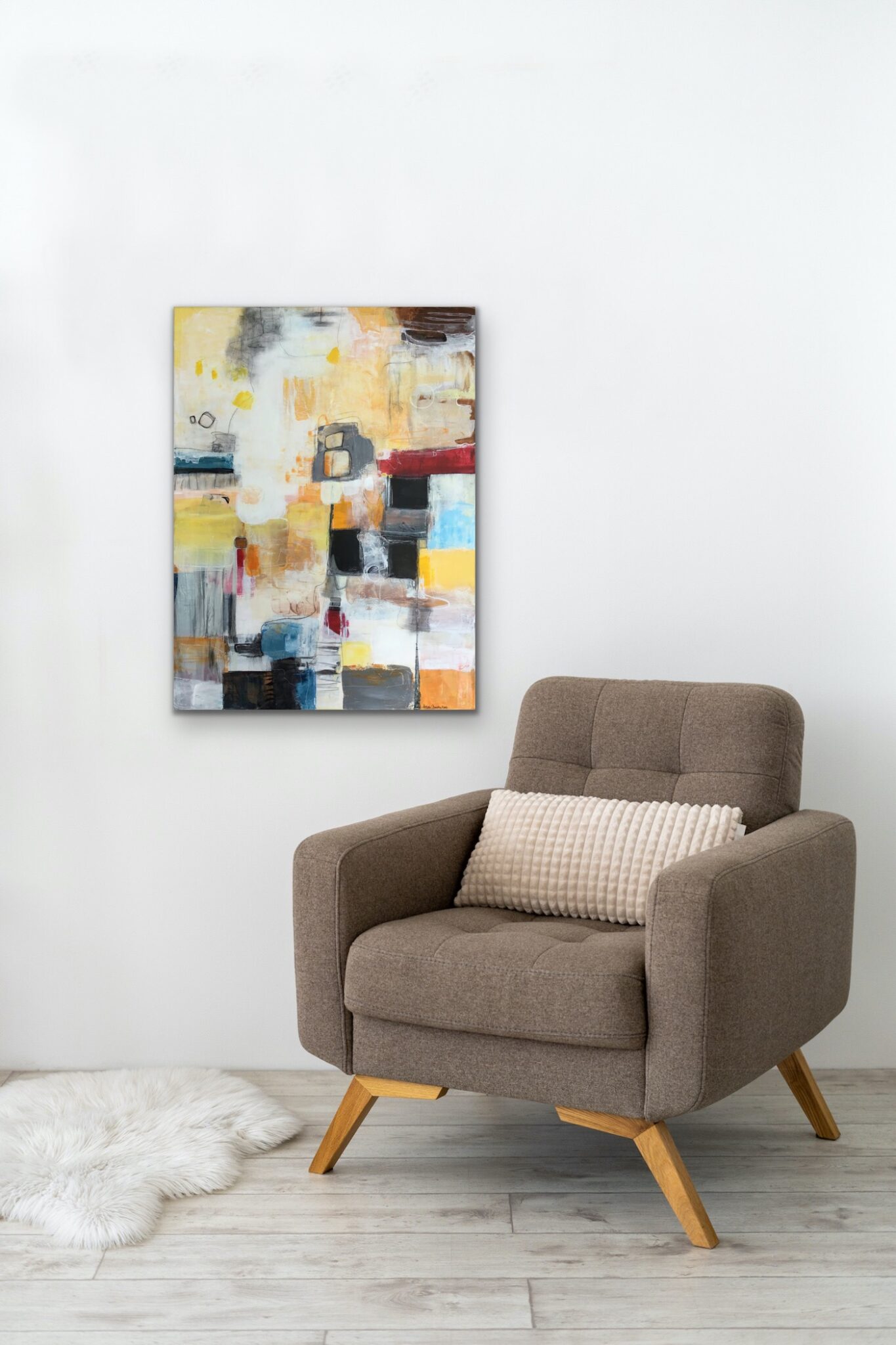 Et spændende unika maleri der tager beskueren med på en rejse, ved og iagttage de enkelte unikke detaljer og farvemønstre.