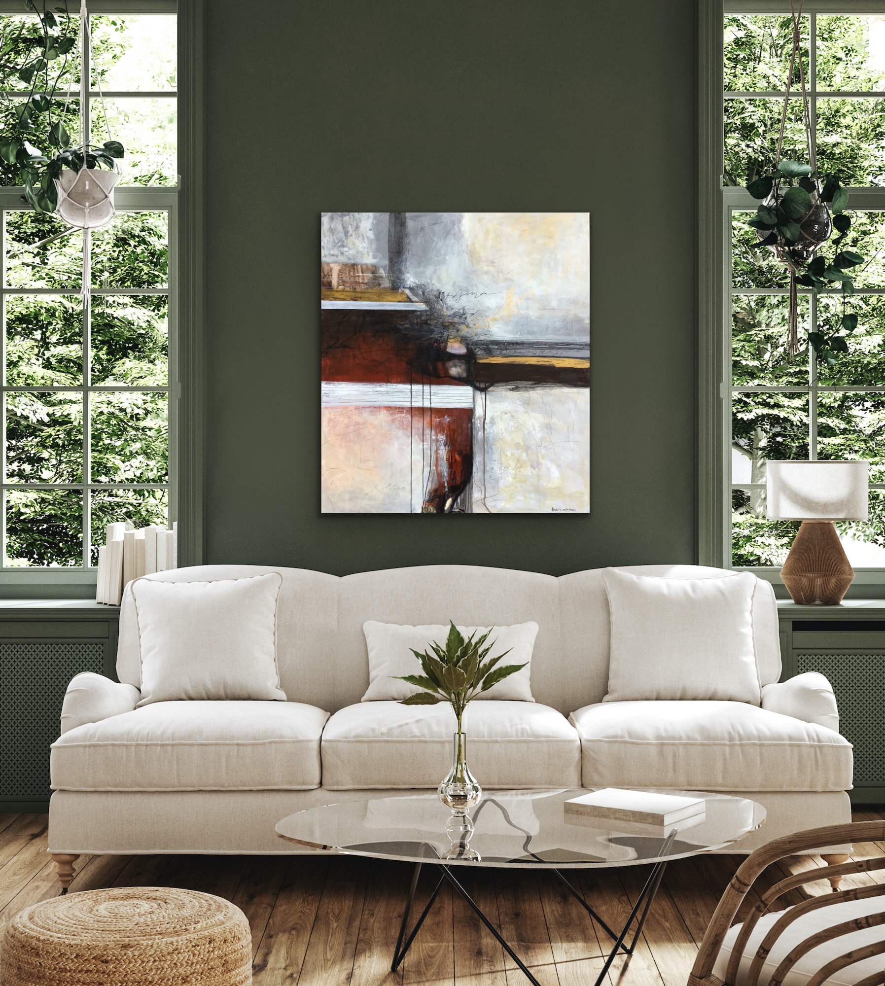 Et smukt unika maleri der lader øjnene vandre og iagttage de enkelte detaljer og farvemønstre.