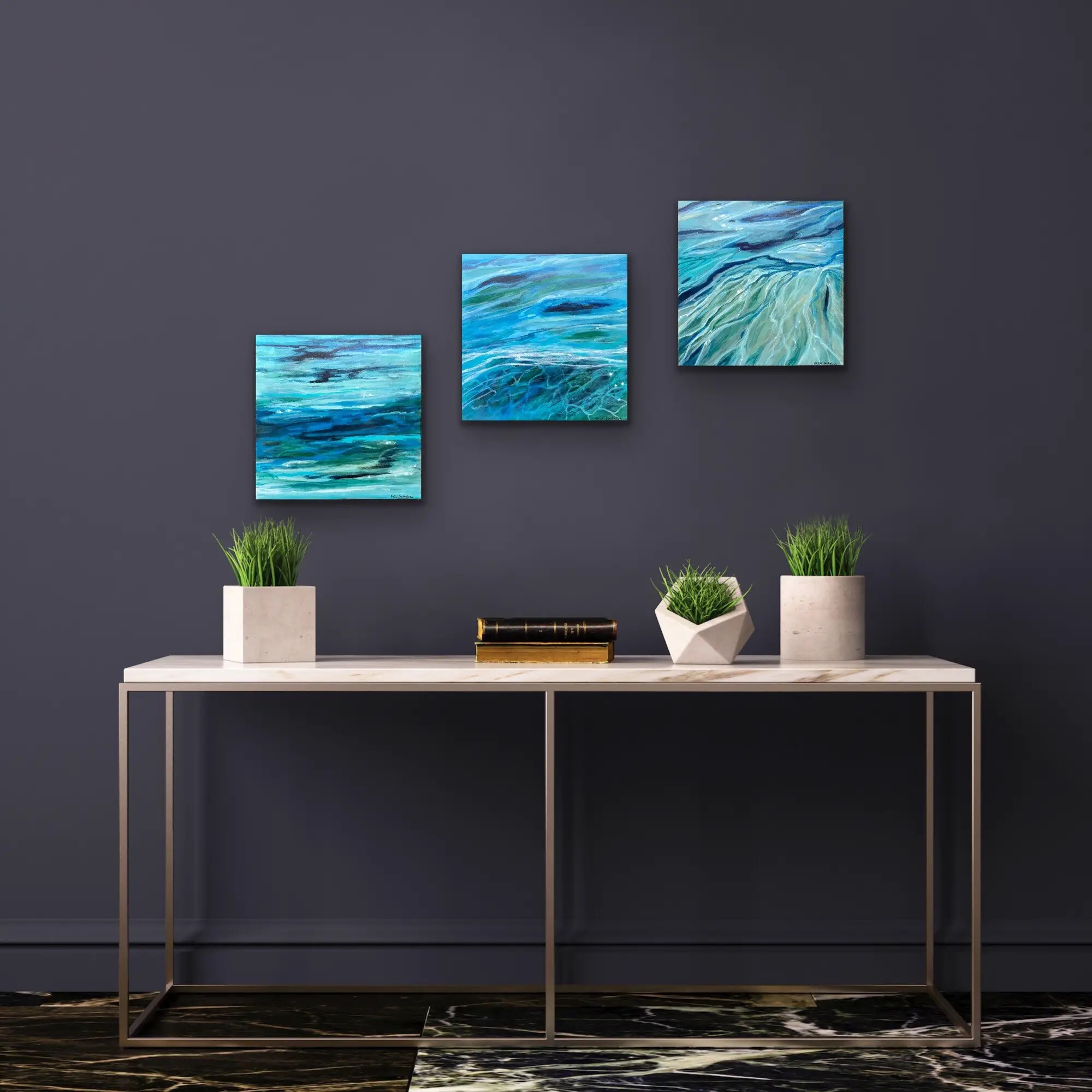 Serien “The Sea”er malet på en træplade i str.30×30 á 3 stk.